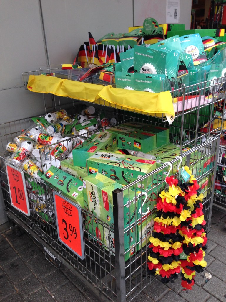 Y aunque me gustaría seguir hablando de toda la mercadotecnia a la que estamos expuestos, creo que seria un post muuuuy largo y más pensando que ¡Alemania esta en la semifinal!, así que seguramente, este fin de semana será caótico y lleno de mil productos «alemanes». Asi que mejor, aqui les dejo una recopilación de todas las cosas que he ido fotografiando, durante este tiempo que ha durado la Eurocopa y que sin duda, rebasan la cantidad de artículos que llegue a ver cuando Alemania se coronó campeón del mundo.